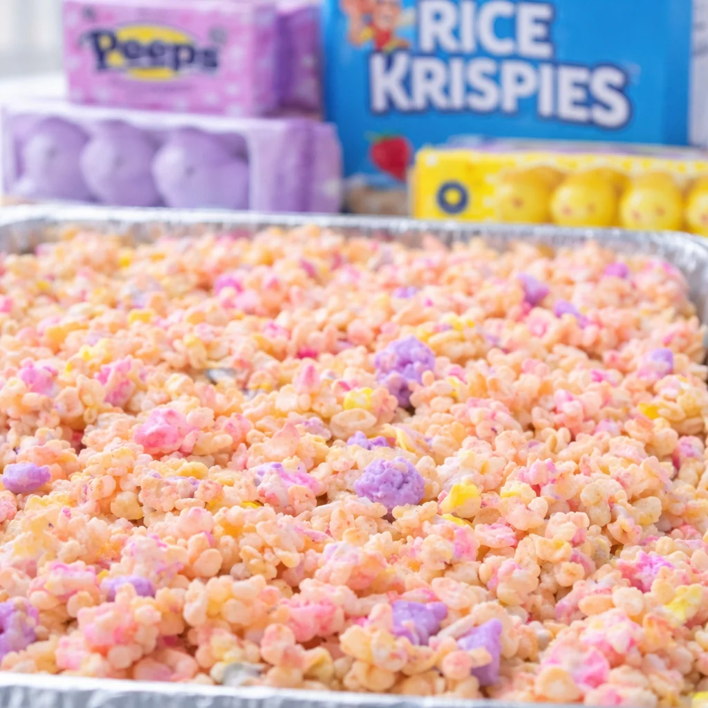 A colorful and fun twist on classic marshmallow cereal bars using Peeps, perfect for quick celebrations and gatherings.