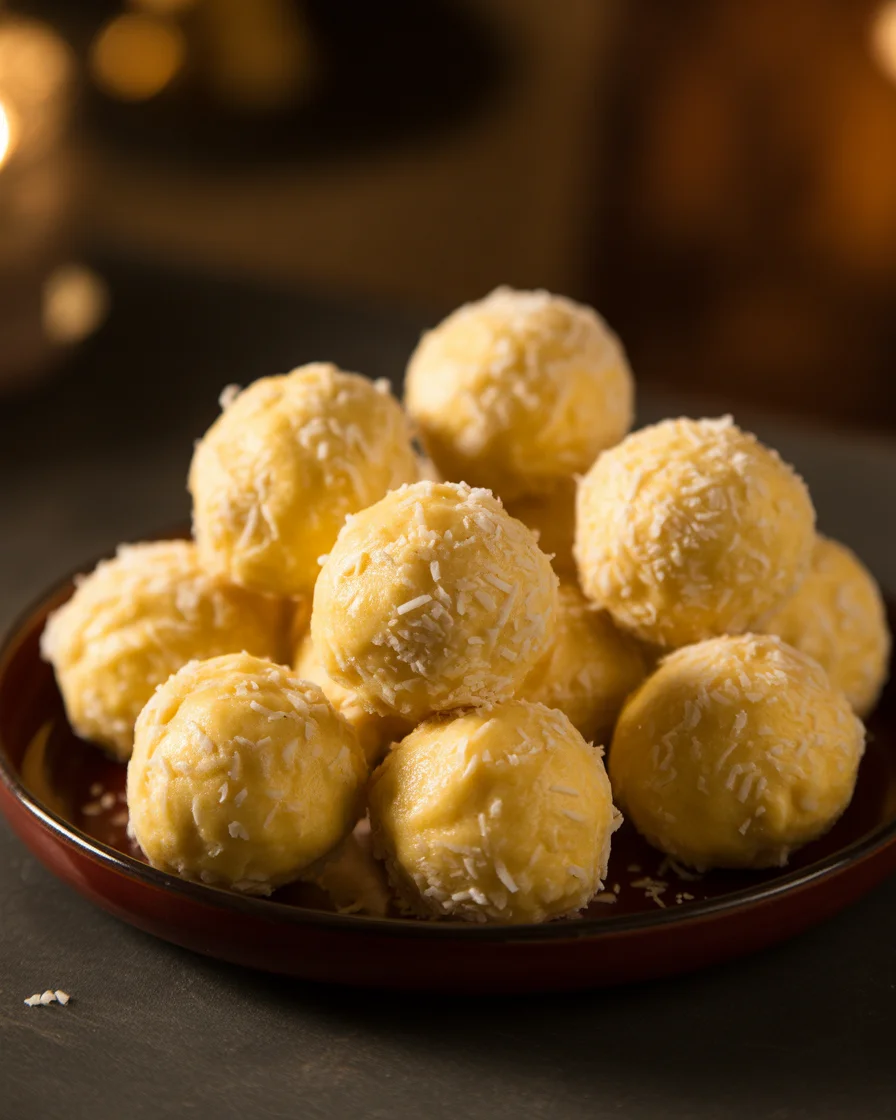 For a glossy finish, you can roll a few balls in finely chopped nuts or dip half in white chocolate. I do not dip all of them, because the coconut roll gives such good contrast, but variety looks amazing on the tray. And if you love the pineapple caramel situation, you might also like the sticky-sweet magic of Pineapple Caramel Heaven Cake.