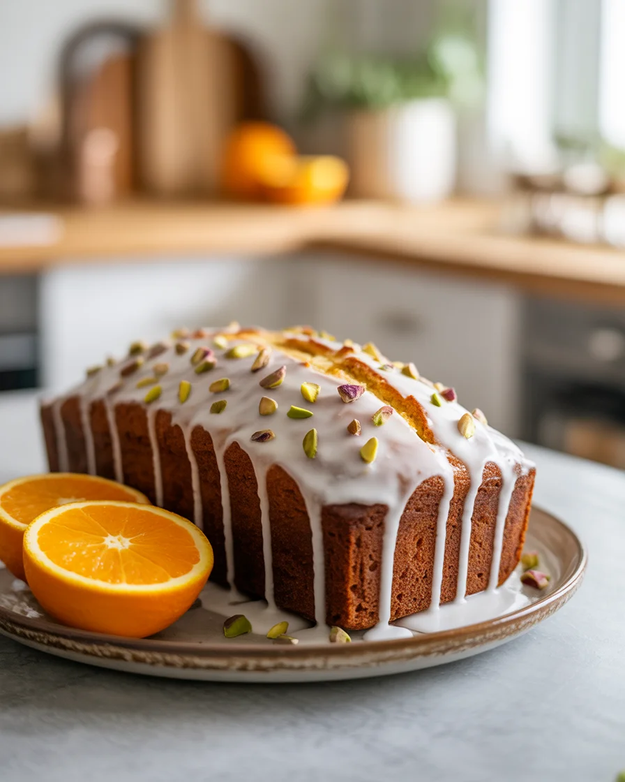 Optional: Extra pistachios for sprinkling, little powdered sugar for dusting. Not life or death, but makes the loaf look fancy.