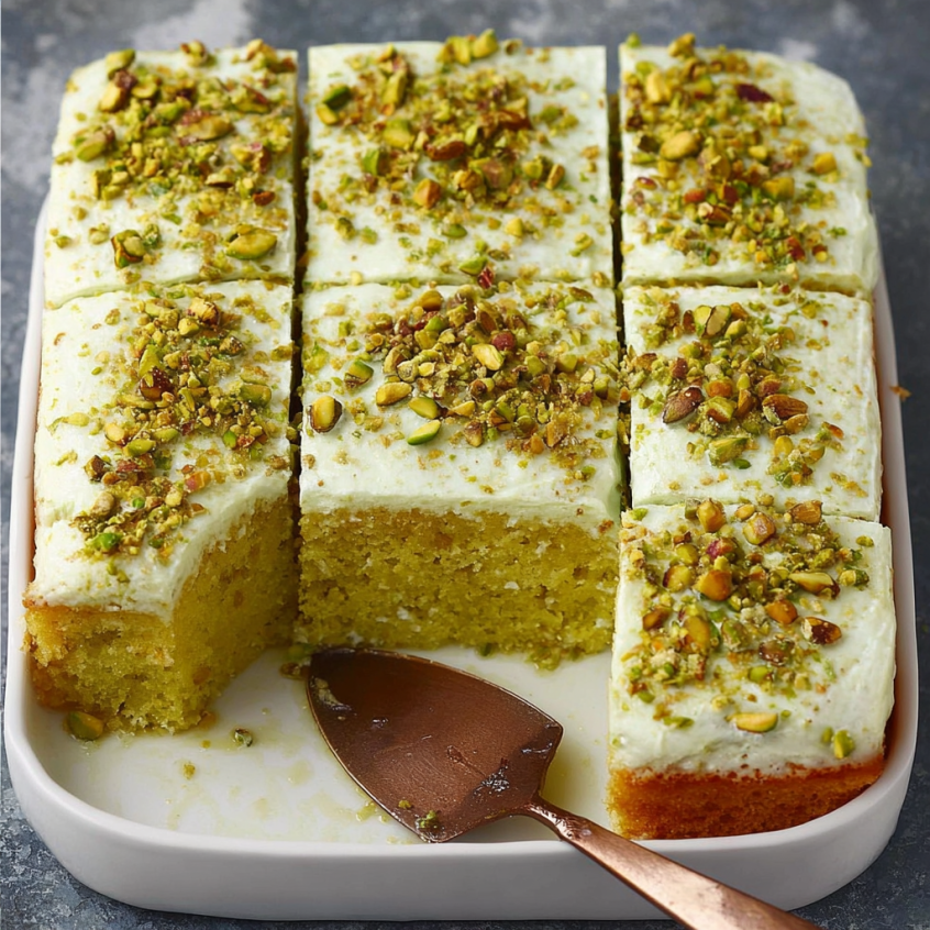 A moist and flavorful cake combining the unique taste of pistachios with tangy pineapple, perfect for any gathering.