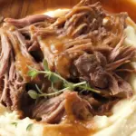 - Shred or slice the beef and serve it over the mashed potatoes with plenty of gravy.