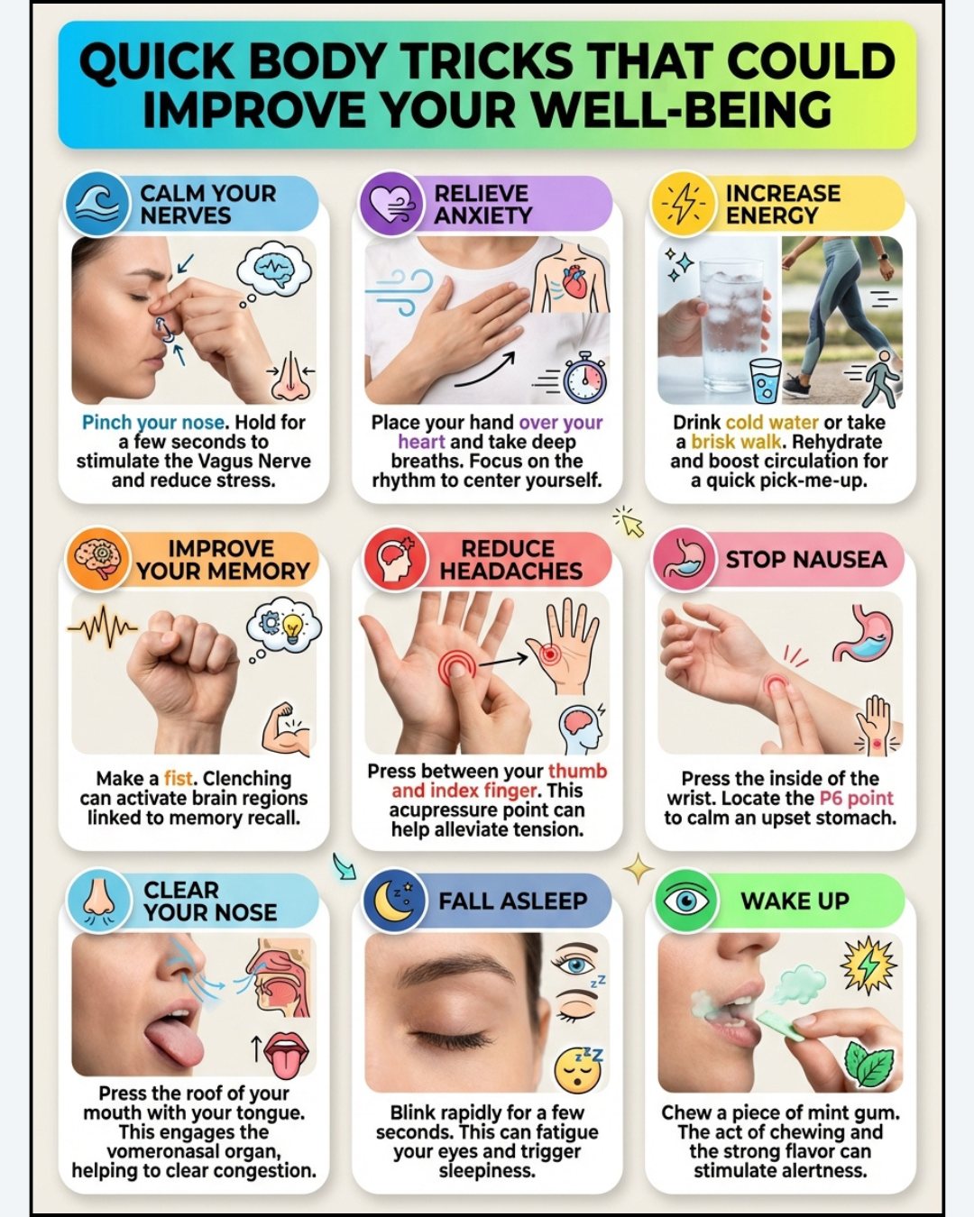 So, thatโs my best, easiest advice for anyone wanting to experiment with Quick Body Tricks That Could Improve Your Well-Being. Itโs honestly not about perfectionโjust adding in a couple mindful minutes or noticing what your body tells you (hereโs a fantastic guide on How to improve your mental wellbeing if you want a pro take). If you like baby steps, there’s also the 5 steps to mental wellbeing – NHS, which breaks things down so simply even I can manage. Try a trick or two, laugh when you mess it up (because you willโitโs part of it!), and notice how even a small change can shift your whole day.