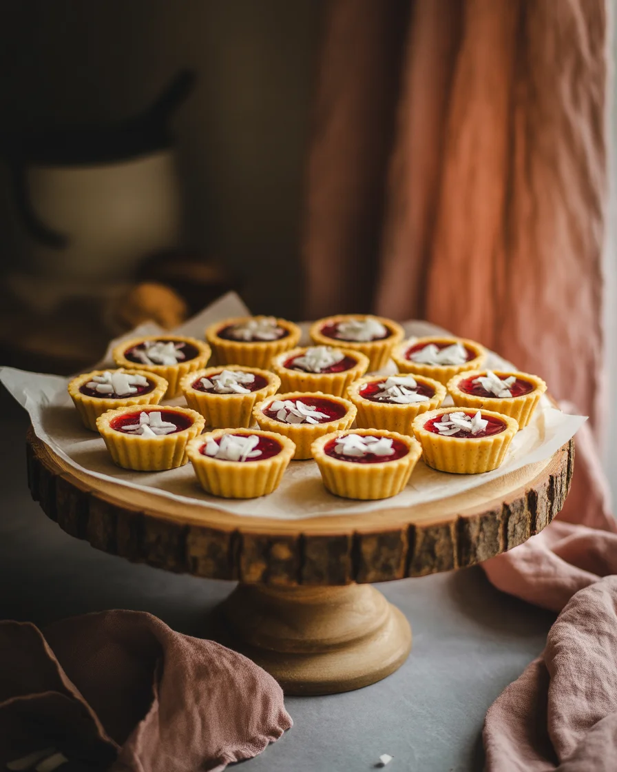 I’ll walk you through it (because if I can do it, anyone can). Grab some shortcrust pastry, either store-bought or just whip it up if you’re feeling ambitious. Roll it out, not too thin, and press circles into a muffin tin. Quick tip: Messy edges are totally fine. Spoon a little raspberry jam into each, don’t overdo it (I’ve cleaned burnt jam off my oven. Never again!). Now, for that coconut crumble—mix sugar, flaked coconut, one egg, and a touch of butter. Top each tartlet with a generous heap. Bake at 350°F for around 20 minutes. That’s really it. You’ll know they’re ready when they’re golden and bubbly around the edges, and the kitchen smells like absolute heaven. I usually let them cool for a while, but I’ll admit, I never wait long enough.