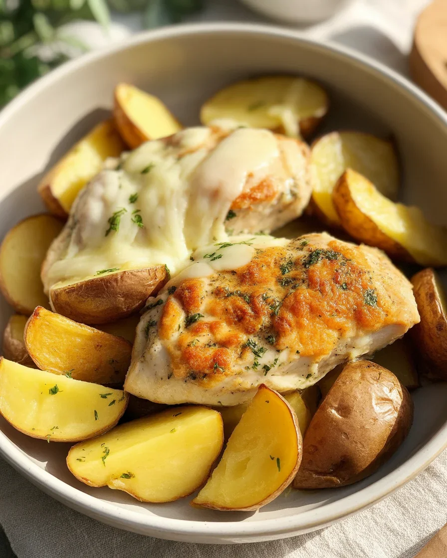Want it creamier. Stir in a splash of heavy cream with the garlic butter to make a light sauce that hugs the potatoes and chicken. If this is your style, you might also enjoy cozy bowls like Chicken and Buttered Noodles on another night.