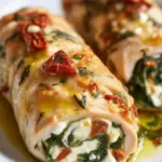 Juicy chicken rolls stuffed with garlicky spinach and tangy feta cheese, perfect for an easy weeknight dinner that feels fancy.