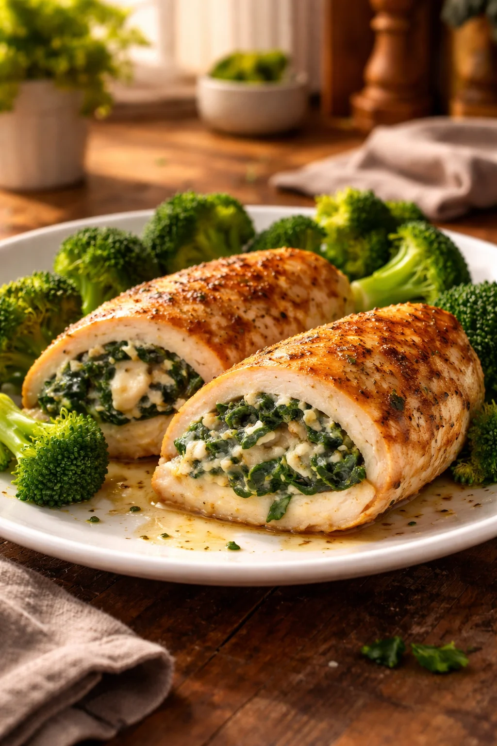 “I made this for my family and everyone thought I ordered takeout. The chicken stayed juicy and the filling tasted like a creamy spinach dip. Definitely going into the regular rotation.”