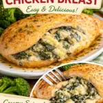 Delicious Spinach Stuffed Chicken Breast with creamy spinach and cheese filling