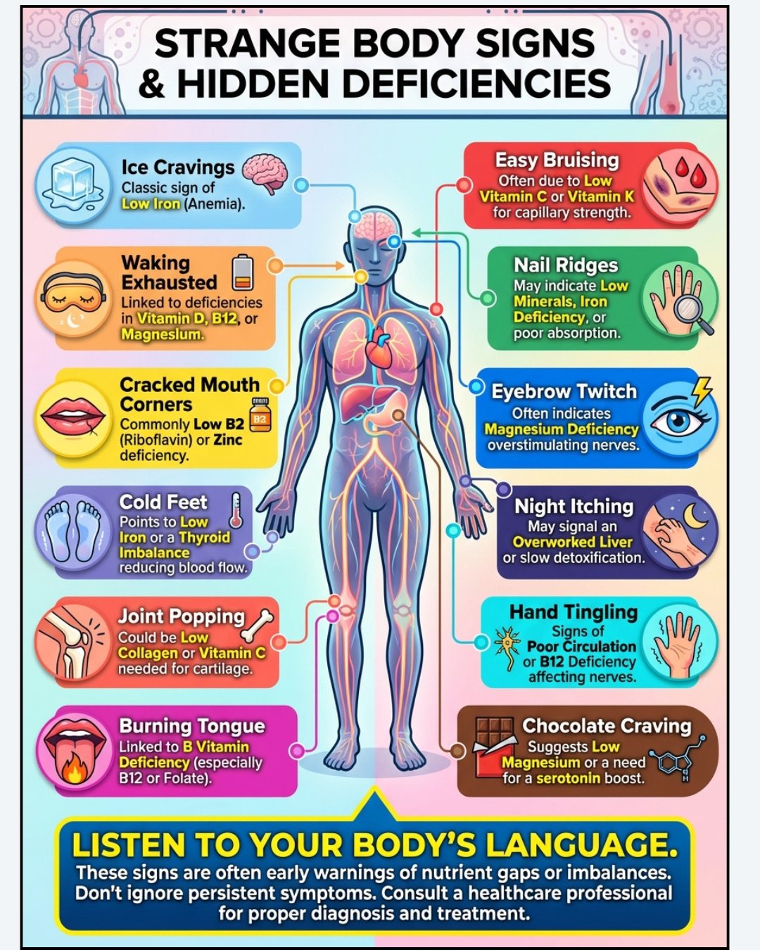 Ever had one of those days where you look in the mirror, spot a weird rash, or feel achy in a way that’s hard to describe? Strange body signs that could reveal hidden deficiencies are a lot more common than you’d think. Sometimes, it’s not just age (or a questionable taco from last night) — your body’s trying to talk to you. I once read that how your face reveals which part of your body is sick—it’s wild how much your skin can hint at what’s cooking inside. And honestly, it reminds me a bit of all those hidden ways grief lives in the body (weird, but stay with me). So let’s break down what these body signals might really mean—without all the medical mumbo jumbo.