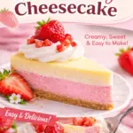 Delicious Strawberries and Cream Cheesecake with layers of strawberry and vanilla
