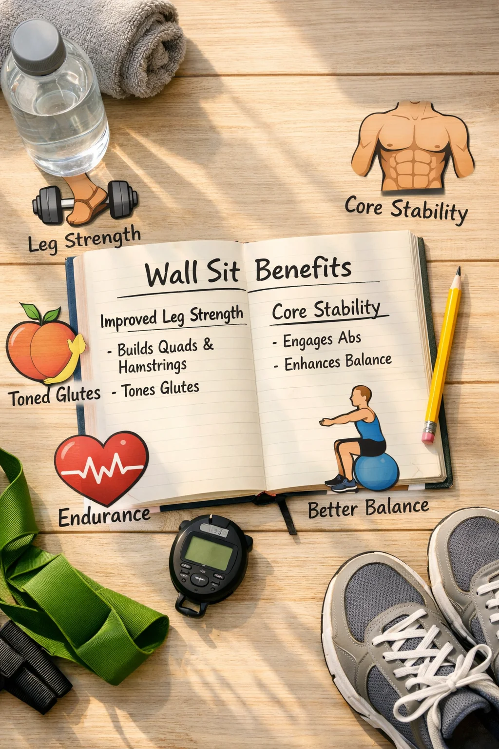 • No equipmentโ€”just your (sometimes wobbly) body and a sturdy wall.