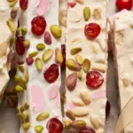 Line your pan with parchment, leaving an overhang for easy lifting. Press the mixture in gently. Don’t pack it hard or you’ll lose that nice rocky texture. Sprinkle the top with more nuts or crushed candy canes to make it look extra festive. Chill until set, then let it sit on the counter for 5 to 10 minutes before slicing so it doesn’t crack.