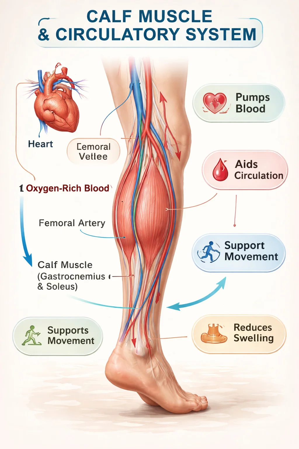 - It acts like a pump (no joke, a tiny heart!) helping squeeze veins so blood can scoot upward.