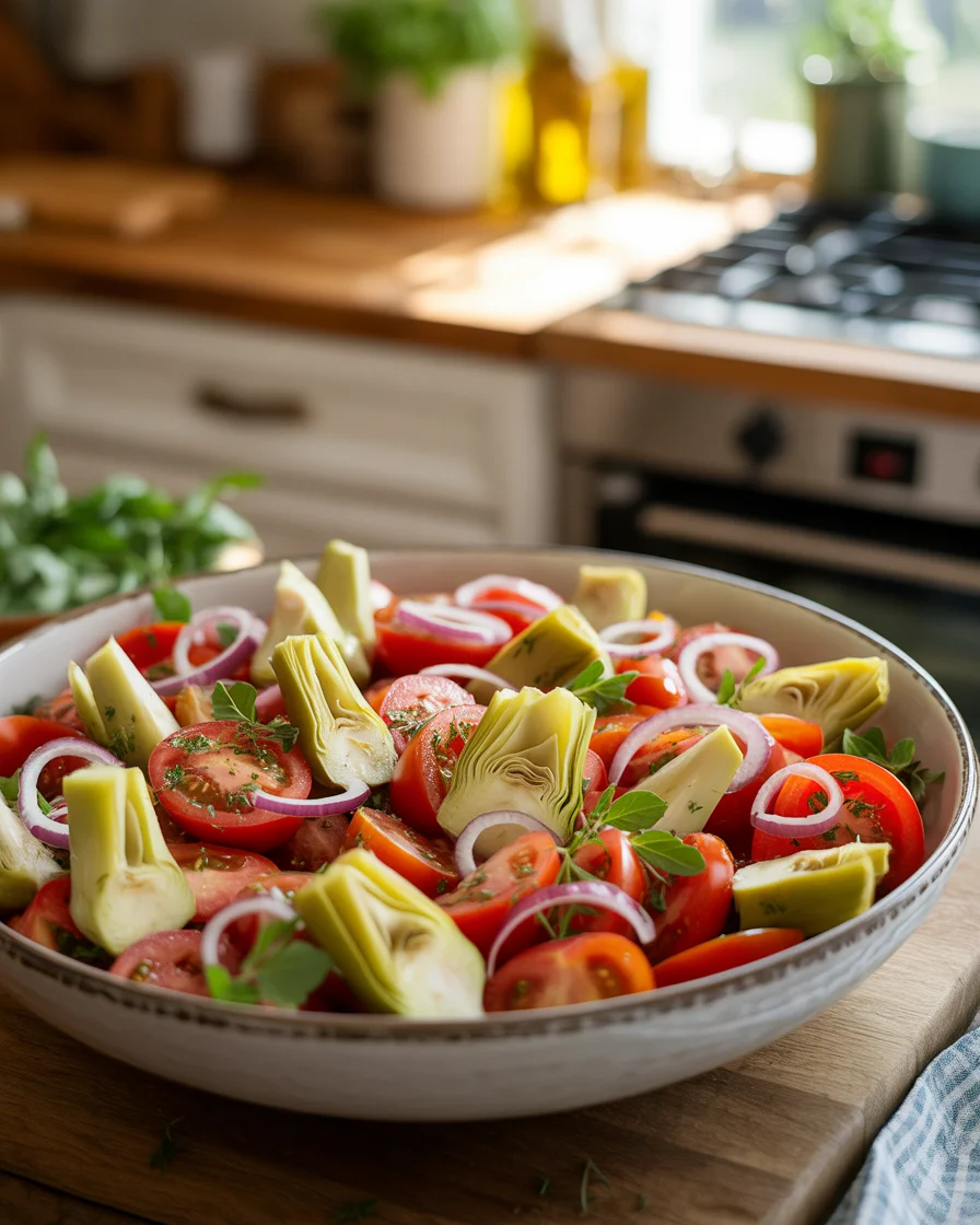 So that’s my story with Tomato and Artichoke Salad with Capers—crazy-easy, crowd-winning, and surprisingly flexible. If you’re just getting into homemade salads, start with this one and branch out. It’s quick, makes you look like a pro, and seriously delivers on flavor. If you need another nudge or want official details, check out the gold standard: Tomato and Artichoke Salad with Capers – RecipeTin Eats. And if you want a wilder dessert twist after salad, go peek at this strawberry banana cheesecake salad. Go grab some tomatoes and artichokes—your taste buds will thank you!