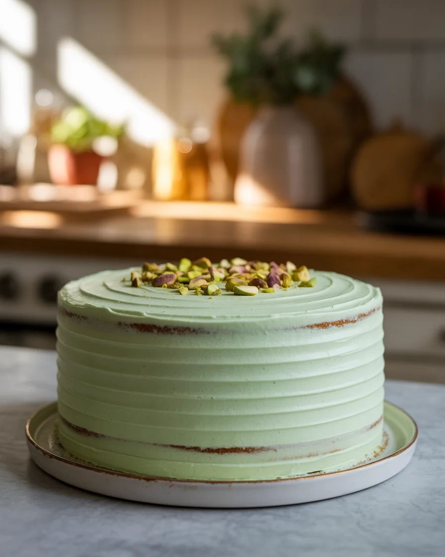 Pour into a greased pan (I go 9×13 most days, but a bundt pan is next-level fancy). Bake for about 30-35 minutes, and don’t panic if a few darker bits poke up—it’s just the pistachios doing their thing. Knife test in the center: if it comes out mostly clean, you’re good! Cool before topping. Frosting? I say whipped cream with a handful more pistachios. Some days I skip that part, and no one even notices.