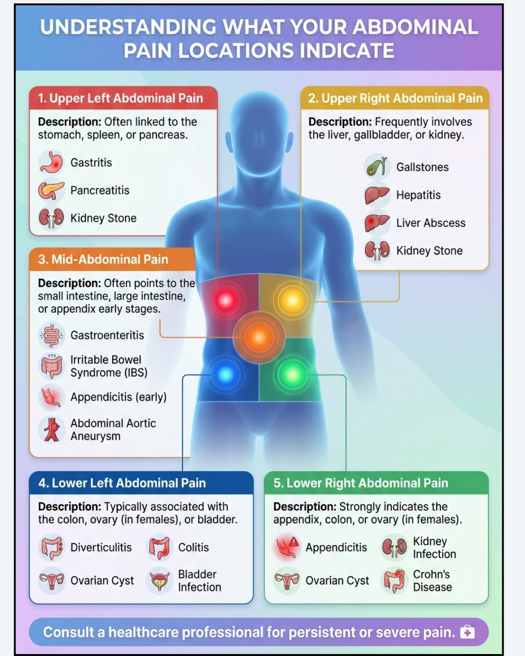 “I used to ignore my stomach aches until one landed me in urgent care. Now I listen to my gut—literally! Turns out, location and type matter more than I thought.” — Jamie L.