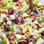 Alright, here’s my can’t-mess-it-up way. I usually dice up two apples (no need to peel, just give ’em a wash), two stalks of celery sliced thin, a cup of grapes halved, and about half a cup of walnuts, roughly chopped. In a bowl: toss the apples and celery with a squeeze of lemon first, or they’ll go brown and sad-looking. Then everything else piles in. The dressing? Eyeball a couple tablespoons of mayo, and, if you’re feeling it, stir in a spoonful of Greek yogurt for zing. Salt and pepper. Stir. That’s it. This is one of those recipes you shouldn’t overthink. If you need more creaminess, add dressing bit by bit. Chill it for the best taste, but honestly, it’s good straight away.