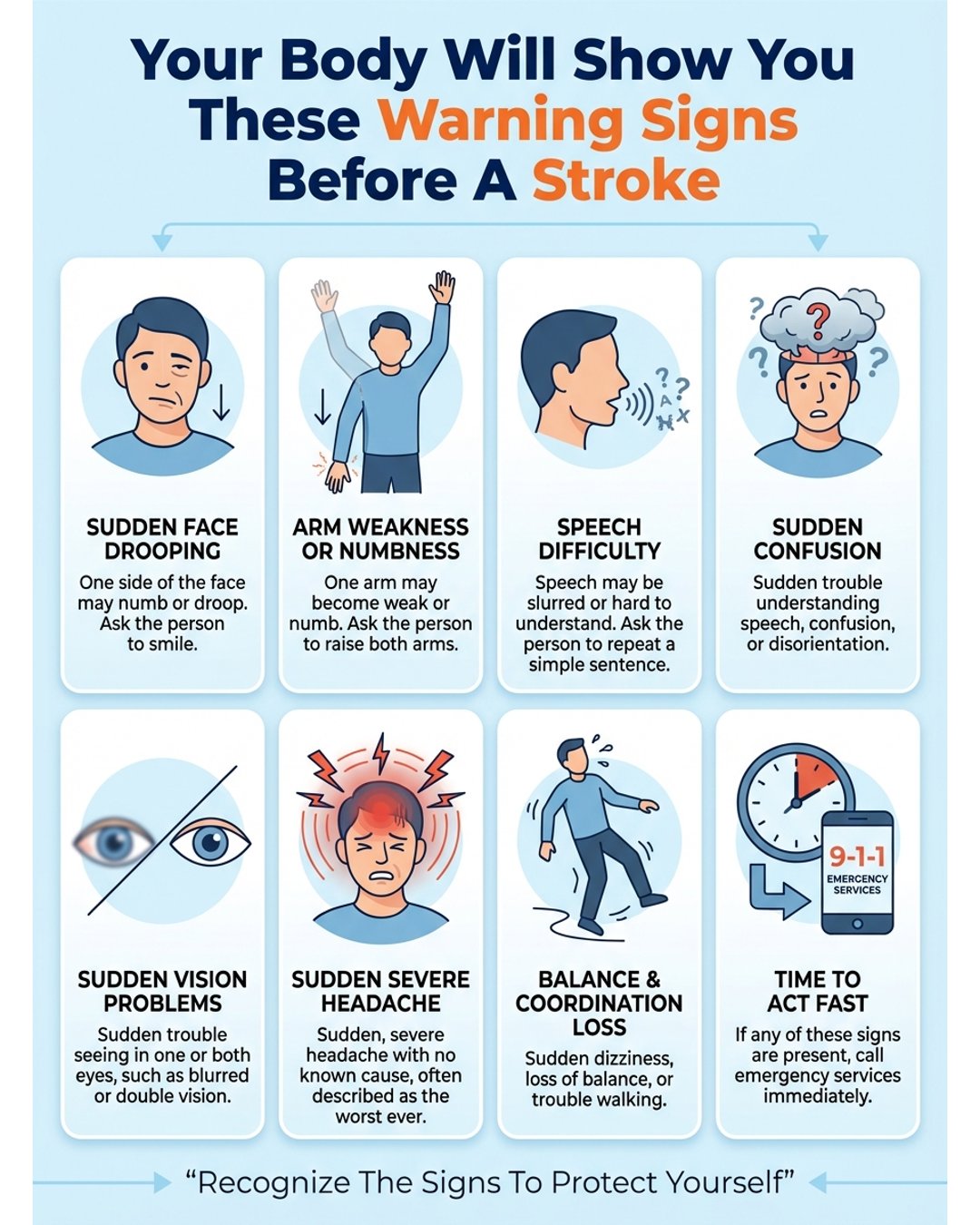 Ever walk into your kitchen, forget why, and blame โ€œscatterbrainโ€ instead of thinking it could be something more? Hereโ€™s the real deal: Your Body Will Show You These Warning Signs Before A Stroke, and honestly, most folks miss them. I used to believe strokes happened out of the blueโ€”like getting caught in a downpour without an umbrella (or rain boots, for that matter). But our bodies, they practically shout at us when somethingโ€™s wrong. I once read about how your bodyโ€™s warning signs speak volumes (source), and wow, it totally changed the way I pay attention to tiny symptoms. And just like knowing where your body shows dehydration first clues you in before you pass out after mowing the lawn (learn more), knowing early stroke signs can be a real lifesaver. So, if sudden weirdness hits, donโ€™t brush it off.