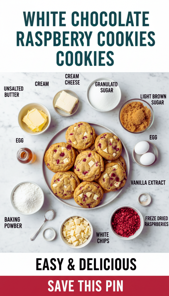 I like to keep this recipe pretty classic, because it works. The big goal here is a soft cookie with a slightly rich bite, plus the white chocolate and raspberry combo that tastes like it came from a cute little shop.